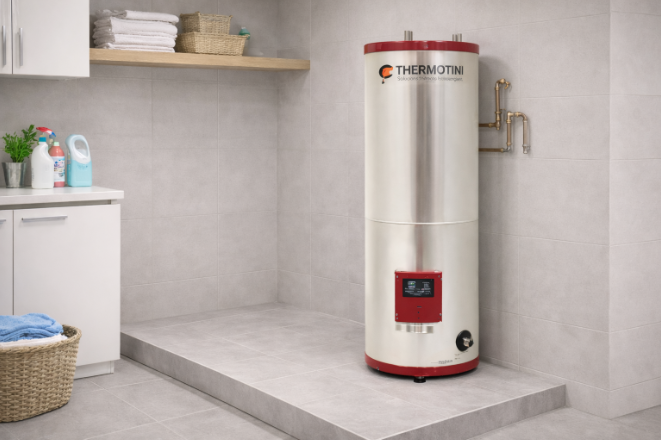 Essa característica faz do boiler uma solução ideal para locais onde há uso simultâneo de vários pontos de água quente ou onde a estabilidade de temperatura é essencial.
