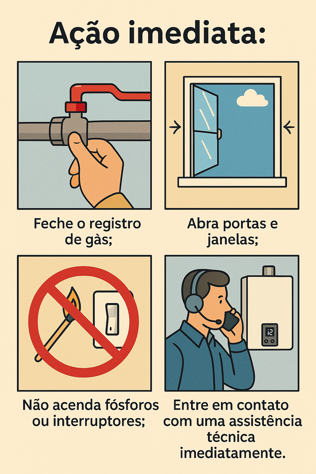 | Cheiro de gás | Vazamento em conexões, mangueira ressecada, regulador ruim | Fechar registro, ventilar ambiente, chamar técnico |